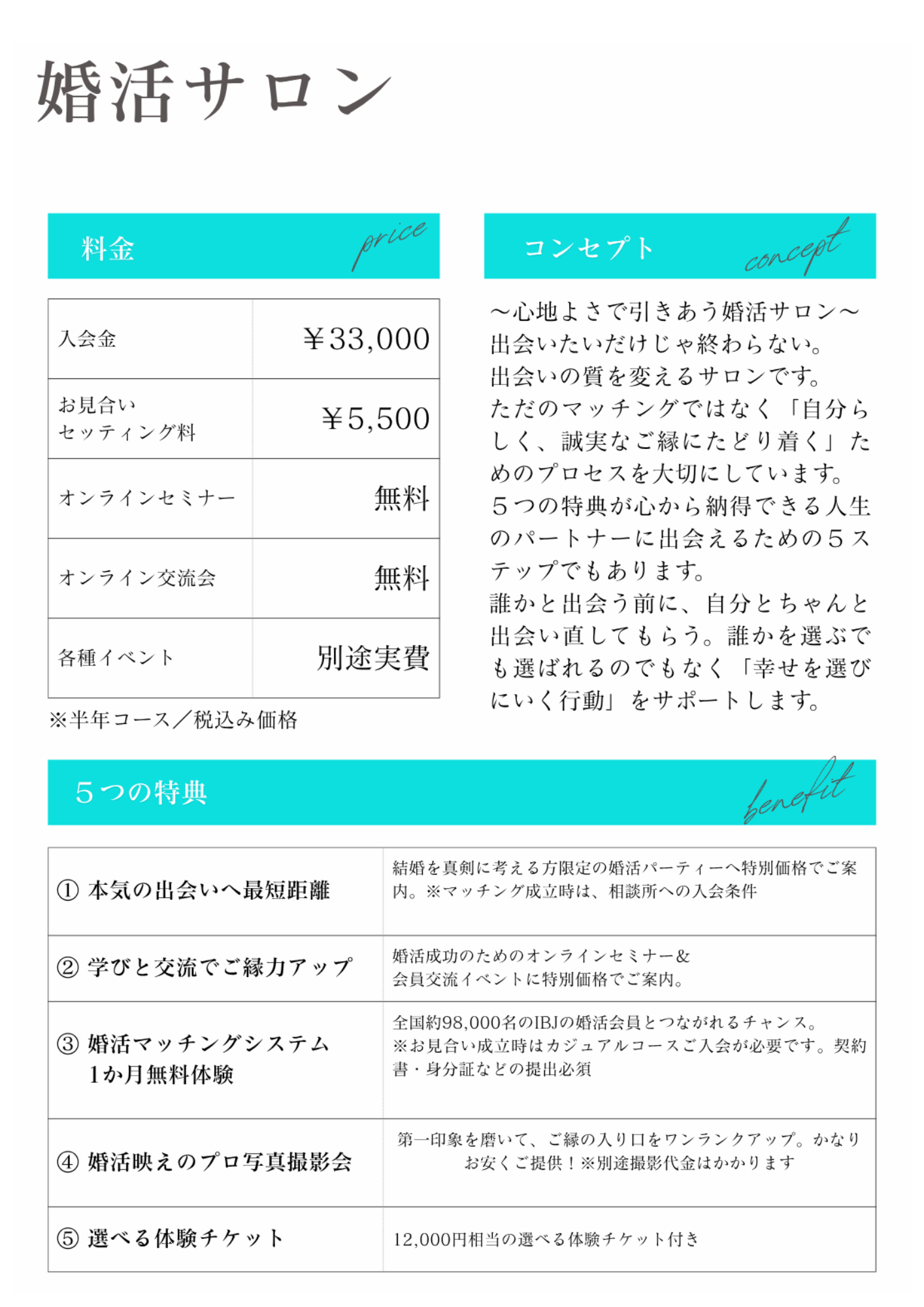 ①結婚を真剣に考える方限定のパーティーへ特別価格でご案内